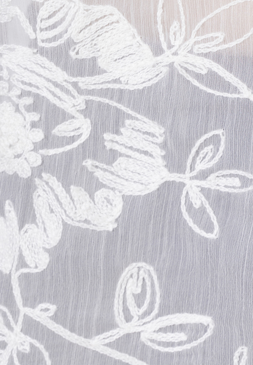 Áo croptop tay lửng vải tơ thêu tinh tế, thanh lịch, trẻ trung. Áo 2 lớp với áo lót trong rời, dáng croptop ngắn quyến rũ. Áo có thể phối với chân váy nữ tính, hoặc phối với quần tây, quần sóc hay quần cullote rộng trẻ trung