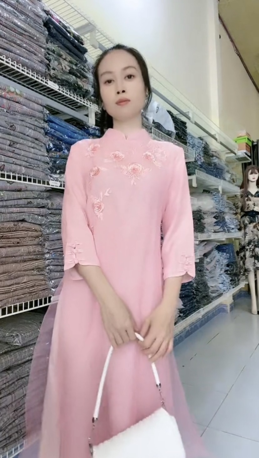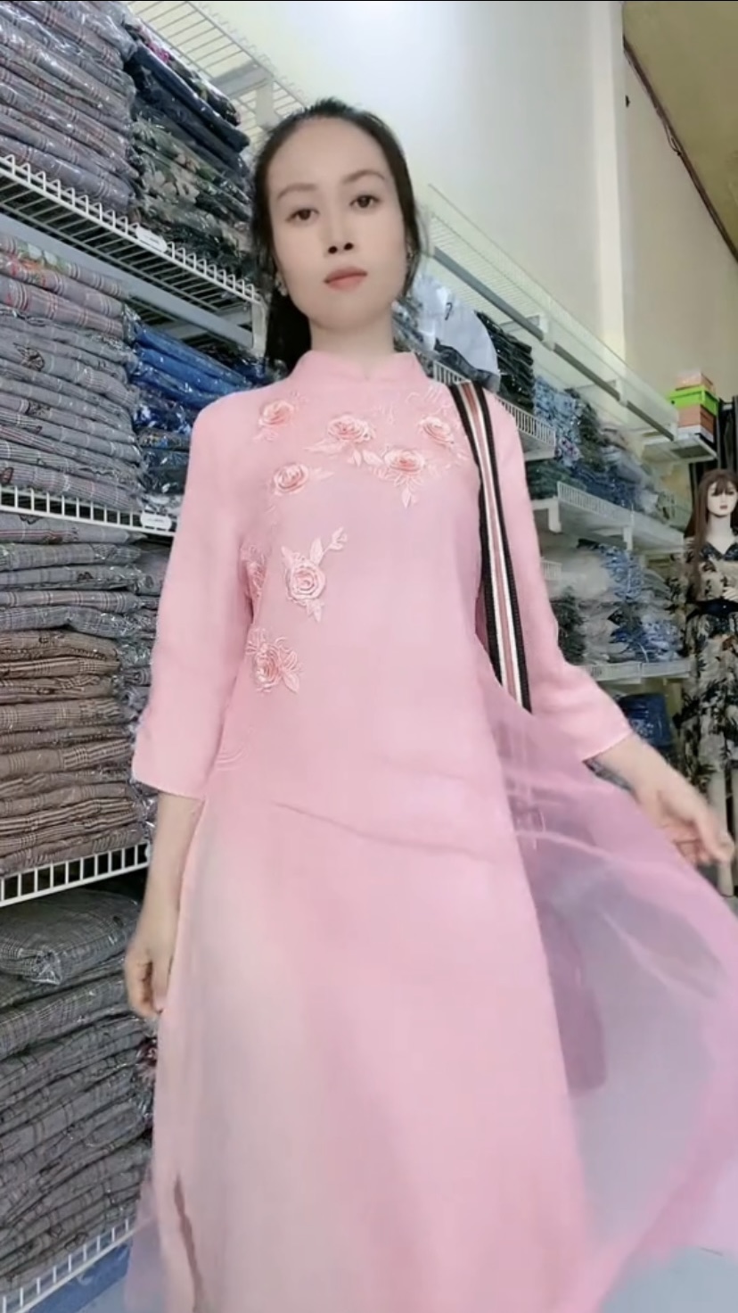 Chất liệu: vải voan tơ thêu hoạ tiết nổi sang hết biết, lớp trong là voan chiffon, lớp trong cùng là thun Kiểu dáng: là 1 chiếc đầm rất sang giả áo dài đẹp tuyệt