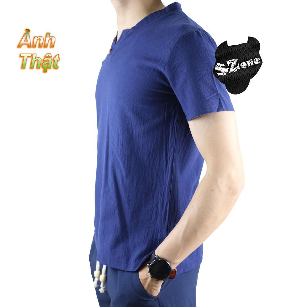Bộ Đũi Nam Cộc Tay Cổ Tàu, Chất Đũi Thái, Form Chuẩn Mặc Mát Lạnh