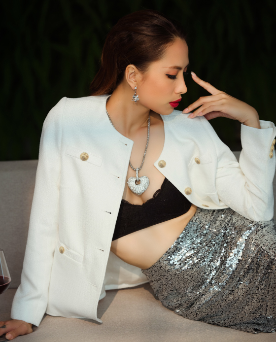 Phối áo khoác tweed trắng với chân váy bút chì: Đây là cách phối đồ mang đến vẻ ngoài sang trọng và quyền lực. Chân váy bút chì giúp tôn lên vóc dáng và sự quyến rũ của người mặc.