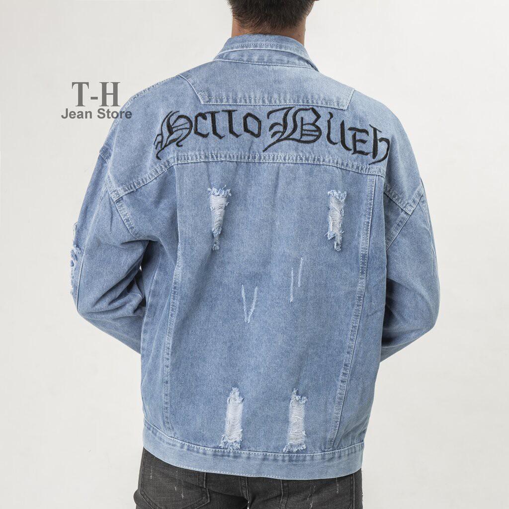 ✨Áo jean nam rách thêu chữ hellobicht phong cách