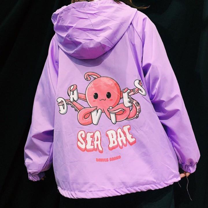 Áo khoác dù unisex nam nữ hình bạch tuộc form rộng Shine Unisex Store