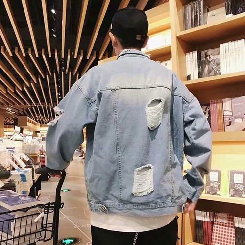 Áo khoác jeans xanh rách Uniex Just One More cực chất Chất Liệu: Vải Jean xịn mặc mát, form đẹp Size : S, M, L, XL, XXl Áo khoác jean form rộng Unisex nam nữ