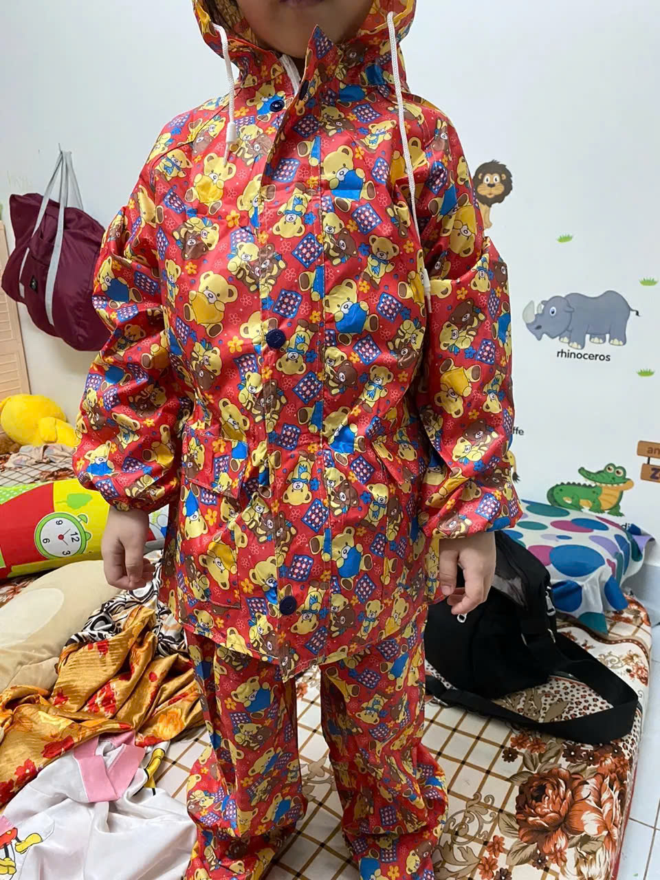 - Áo mưa bộ cho trẻ từ 3 - 5 tuổi , vải dù cao cấp ,siêu bền , chống thấm nước , có túi đựng xinh xắn , nhỏ gọn dễ mang theo mọi