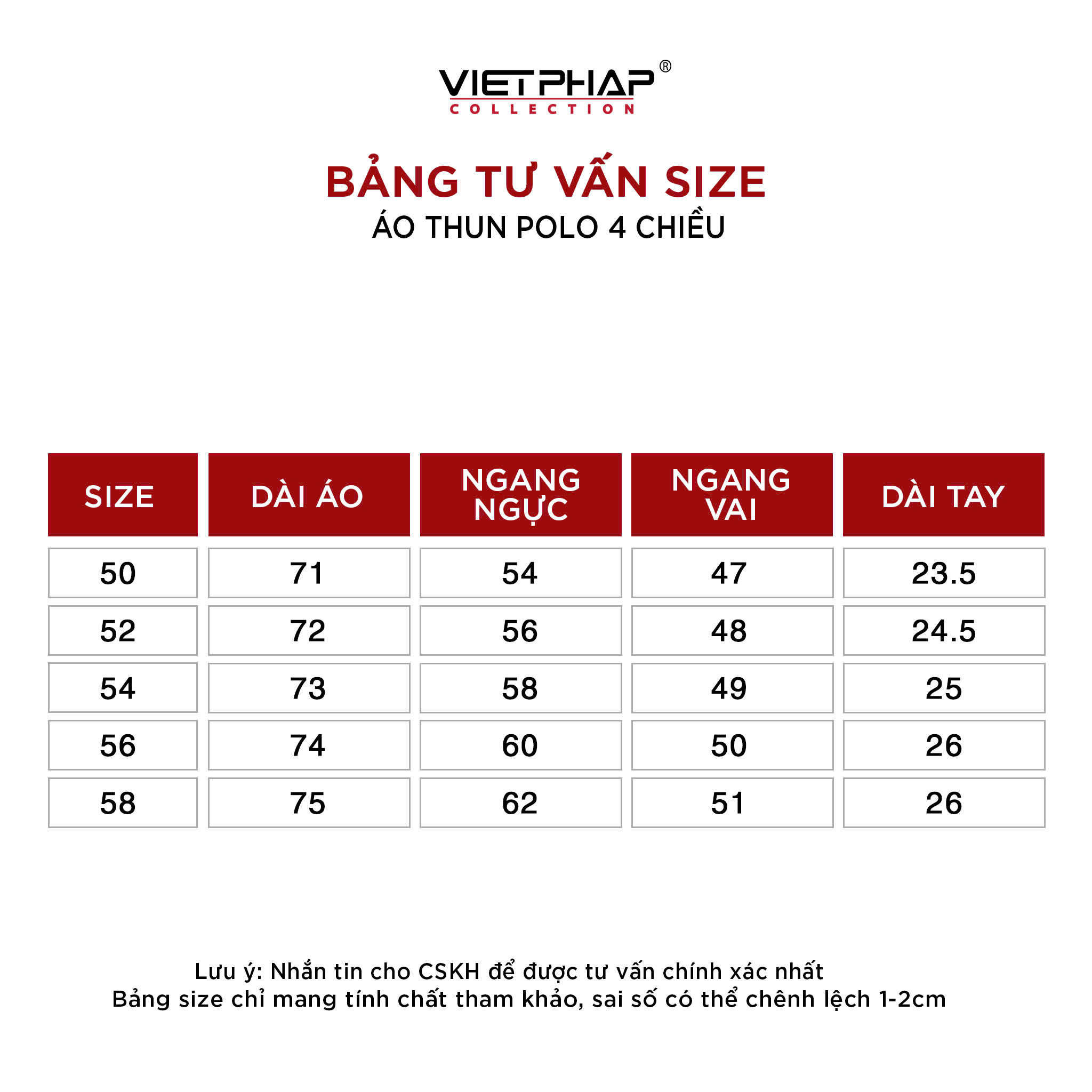 Áo Thun Polo VIỆT PHÁP cao cấp mềm mại thoáng khí - Chất liệu: Polyester - Spandex - Size: 50 - 52 - 54 - 56 - Màu: 6 màu - Kiểu dáng: Màu