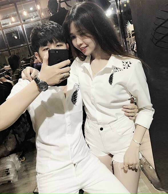 Thiết kế Áo sơ mi cặp họa tiết lông vũ và chim cao cấp phong cách đường may tỉ mỉ. Áo thiết kế form vừa vặn giúp tôn được đường nét phong cách của các