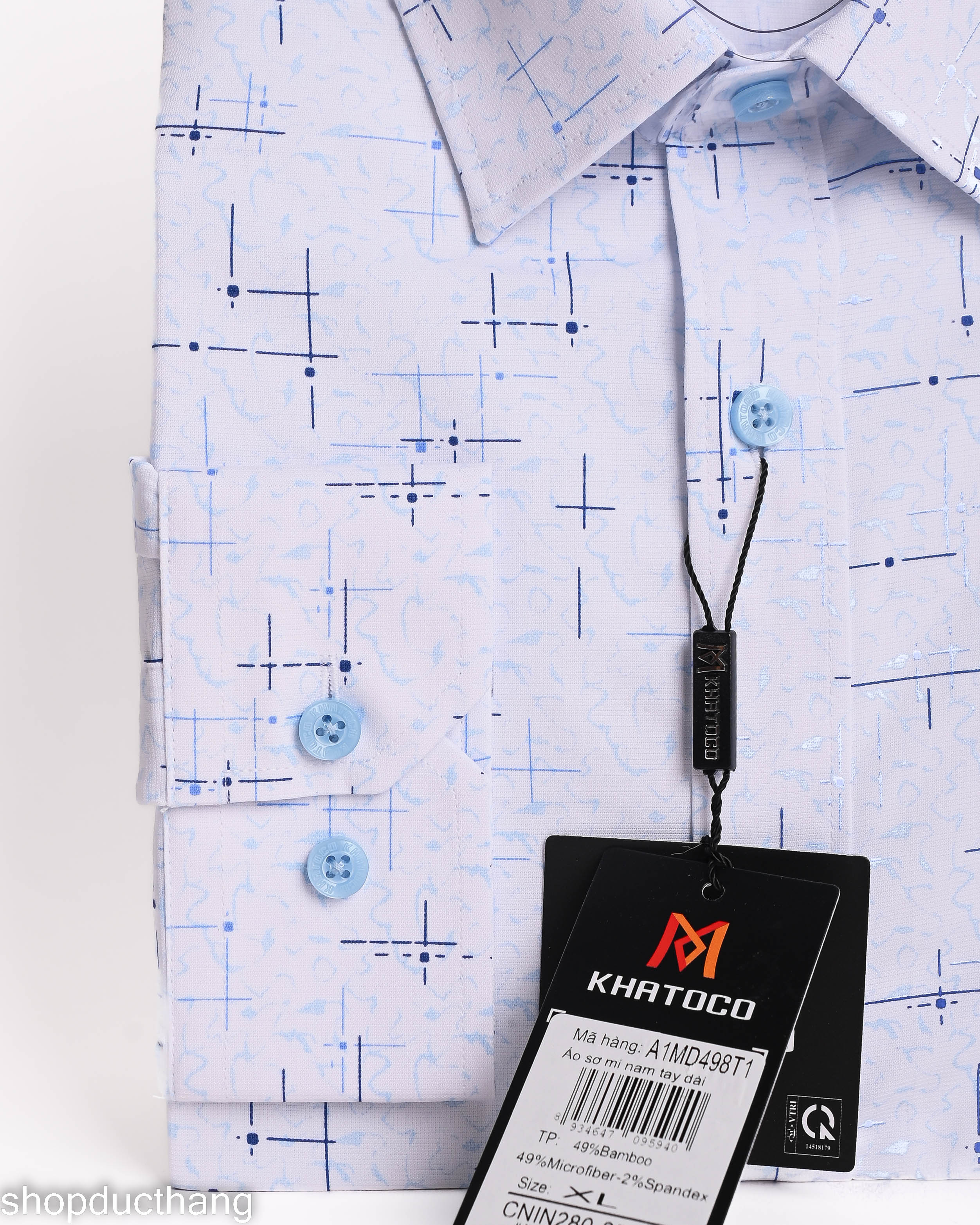 Mô tả sản phẩm – Áo sơ mi nam tay dài Khatoco (Mã A1MD538T1) Chất liệu cao cấp - 49% Polyester: Giữ form tốt, bền màu, ít nhăn. - 49% Viscose (Bamboo): Mềm mại, thoáng