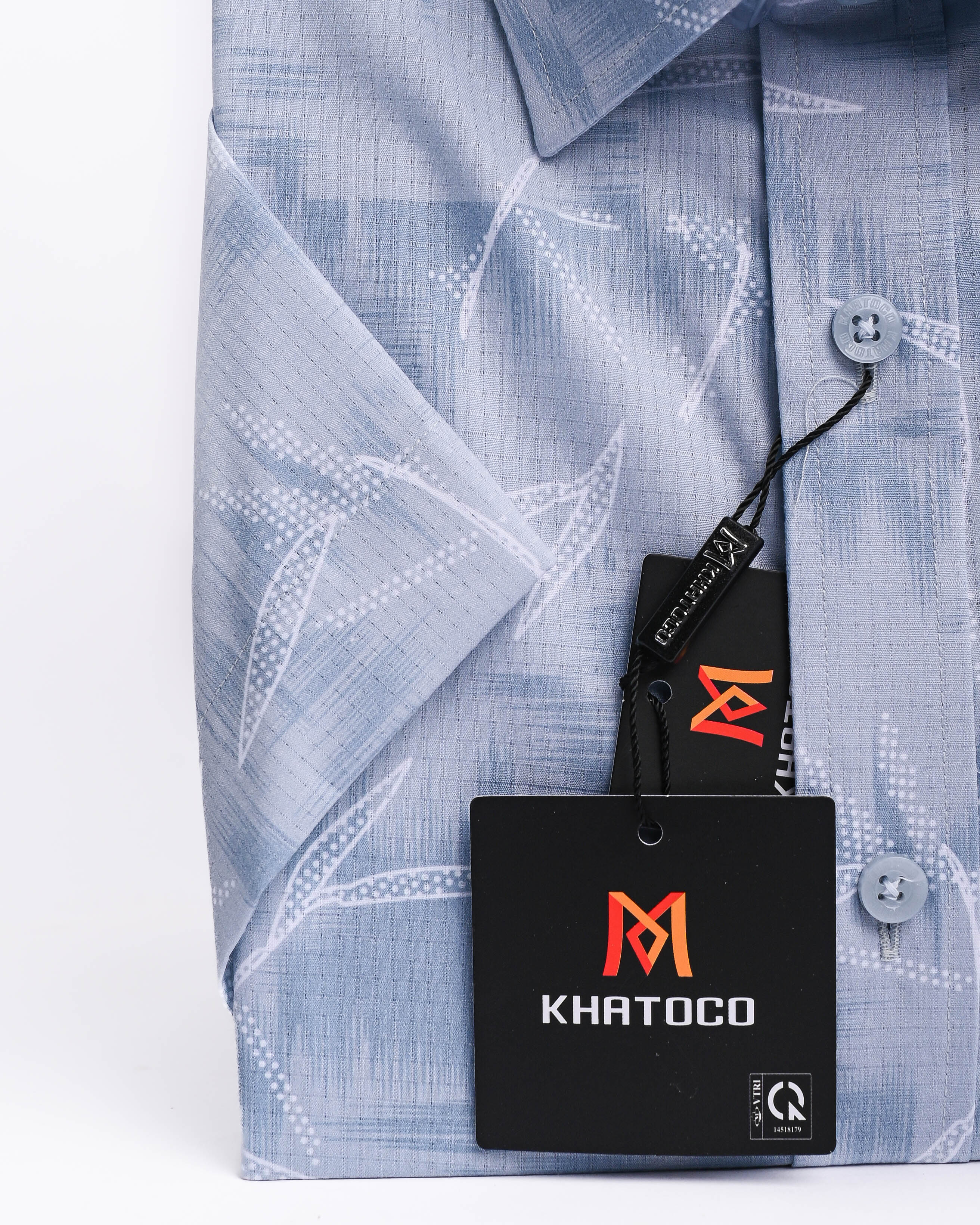 Áo sơ mi nam tay ngắn lai ngang – Khatoco - Mã hàng: A1MN538T2 - Chất liệu: 75% Polyester + 22% Viscose (Bamboo) + 3% Spandex → Vải mềm mại, thoáng mát, co giãn nhẹ,