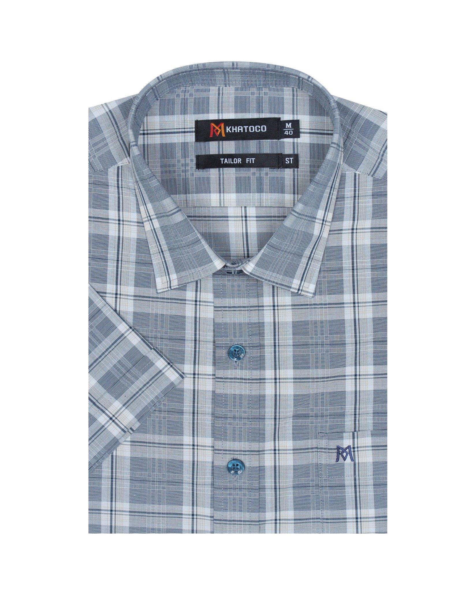 Áo sơ mi nam tay ngắn lai ngang – Khatoco - Mã hàng: A1MN538T2 - Chất liệu: 75% Polyester + 22% Viscose (Bamboo) + 3% Spandex → Vải mềm mại, thoáng mát, co giãn nhẹ,