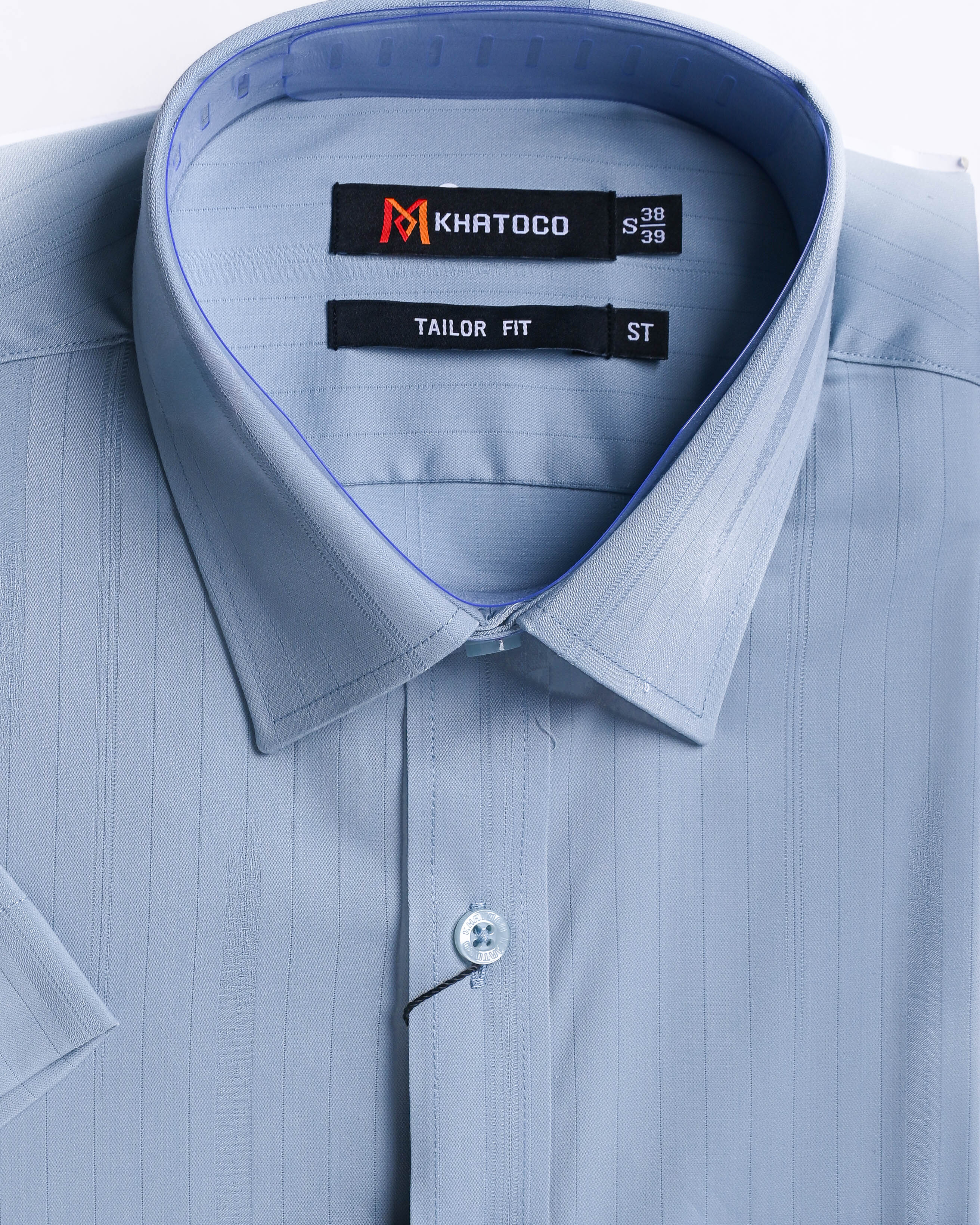 Áo sơ mi nam tay ngắn lai ngang – Khatoco - Mã hàng: A1MN538T2 - Chất liệu: 75% Polyester + 22% Viscose (Bamboo) + 3% Spandex → Vải mềm mại, thoáng mát, co giãn nhẹ,