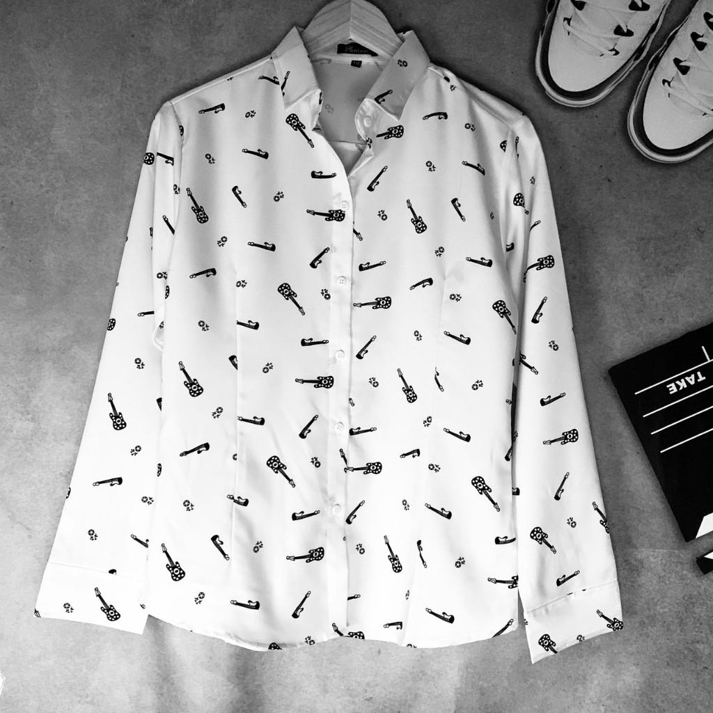 Loại sản phẩm:Áo Sơ Mi Nữ Dài Tay Họa Tiết Cây Đàn Mẫu FR03 Thời Trang Nữ PONIVA Thiết Kế Trẻ Trung, Thanh Lịch