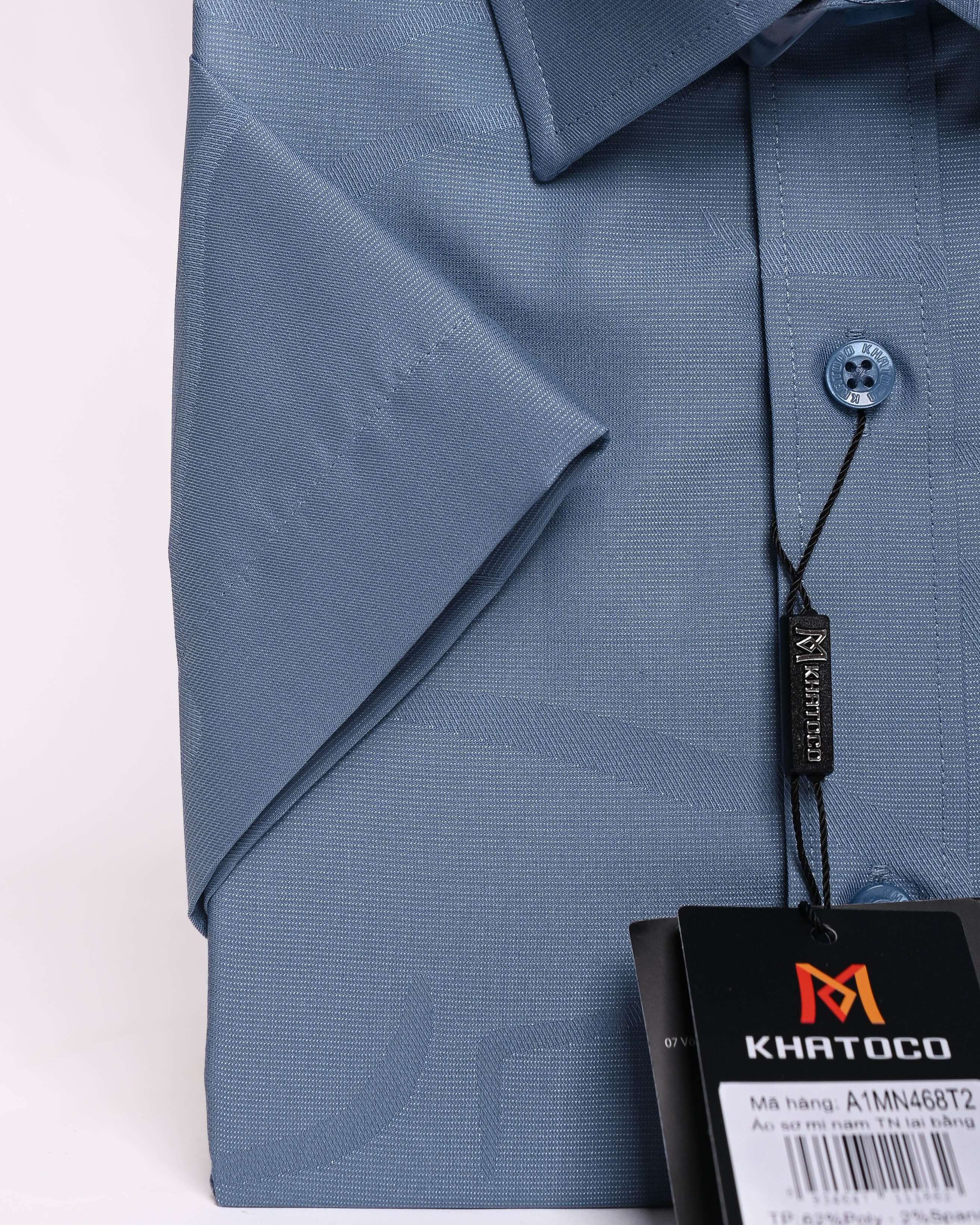 Áo sơ mi nam tay ngắn lai ngang – Khatoco - Mã hàng: A1MN538T2 - Chất liệu: 75% Polyester + 22% Viscose (Bamboo) + 3% Spandex → Vải mềm mại, thoáng mát, co giãn nhẹ,