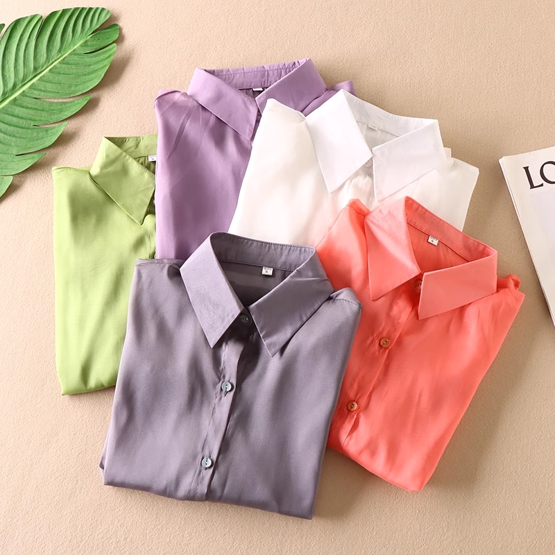 Áo sơ mi tơ lụa phủ bóng TOP032C Size: S - M - L - Hướng dẫn giặt và bảo quản sản phẩm: + Giặt khô hoặc giặt tay + Không sử dụng chất tẩy