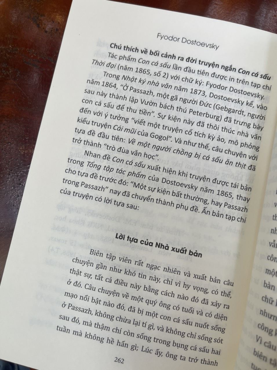 Vậy là sau nhiều ấn bản quen thuộc, hôm nay ta có thê tác phẩm lần đầu được dịch ra tiếng Việt (dịch chừng 10 tác phẩm trong tổng số 23). Tập truyện này bao gồm ba bản dịch Bà Chủ (1847), Nhân vật bé con (1894) và Con cá sấu (1865). Ba tác phẩm này có phần khiêm tốn trong di sản của nhà văn, song thiếu chúng chắc chúng ta không có được cái nhìn hệ thống và toàn diện về những vận động tư tưởng dẫn dắt nhà văn tới những trước tác “khổng lồ” về quy mô và tầm vóc sau này.
