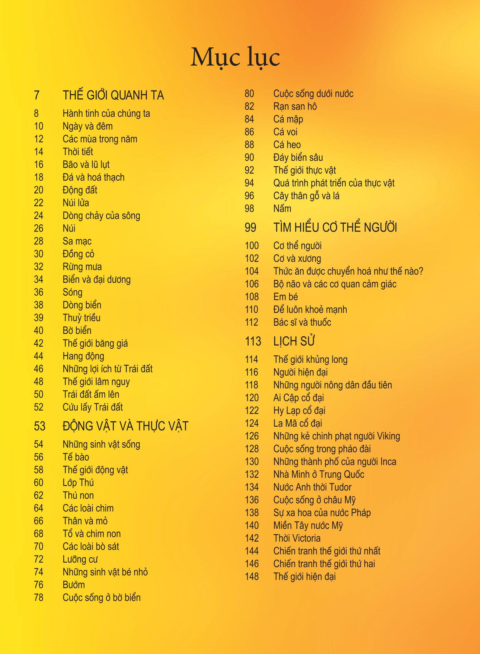 - Nội dung sách rất phong phú, bao trùm nhiều lĩnh vực như khoa học, sinh học, lịch sử… giúp thỏa mãn trí tò mò và ước ao khám phá của các em nhỏ.