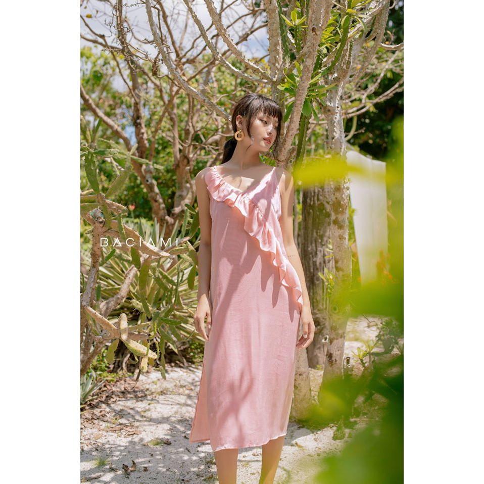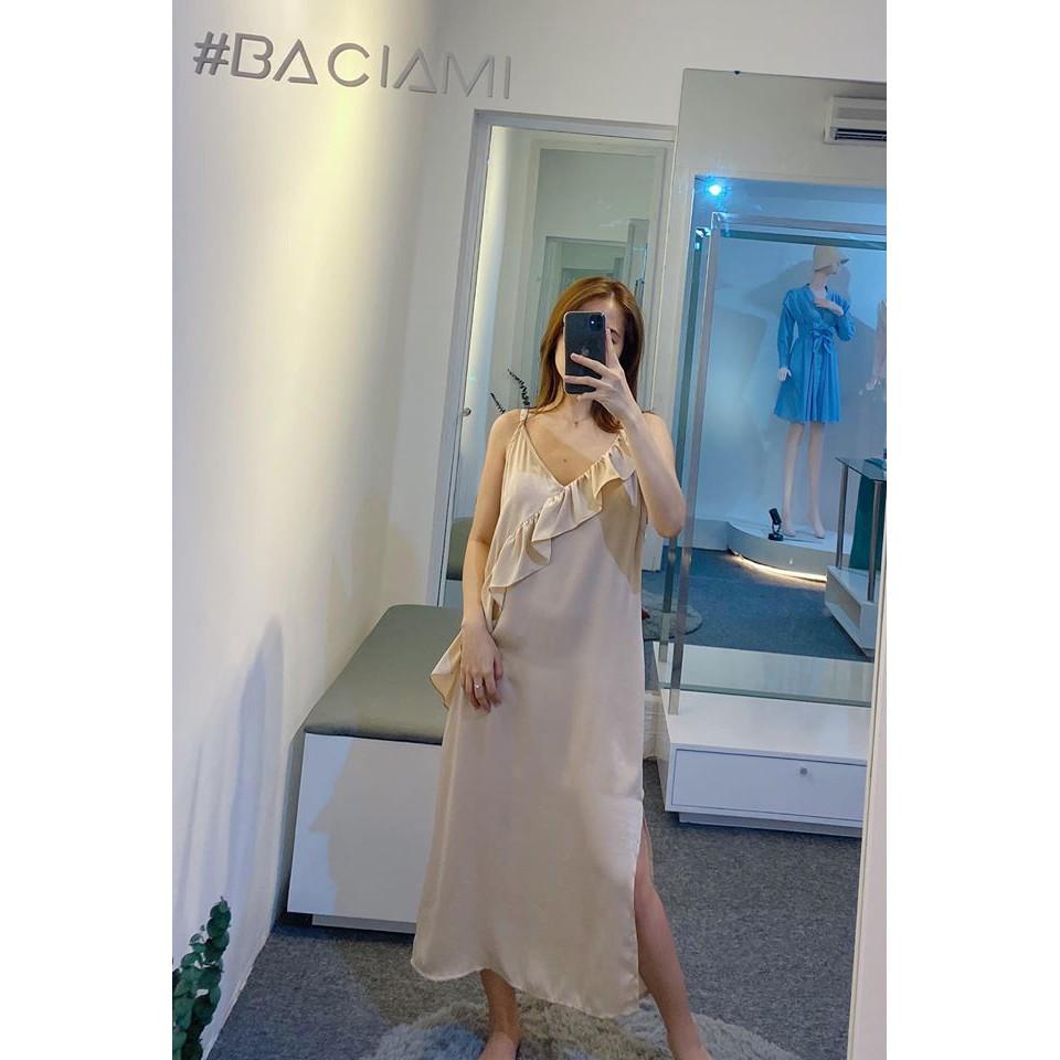 ✨Baciami-Đầm 2 Dây Nhún Bèo Xẻ Đinh