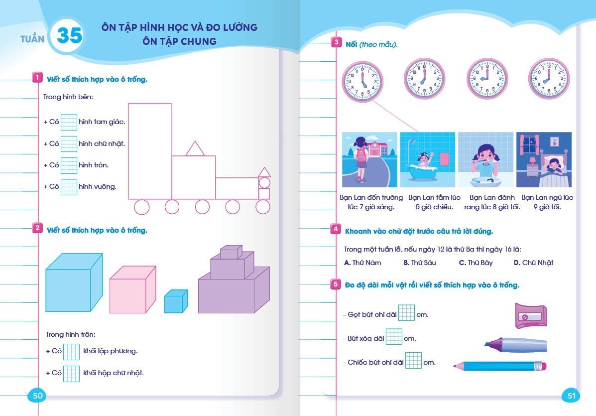 Bộ sách được chia theo tuần, ôn tập tổng quát kiến thức đã học, nội dung bám sát CT sách giáo khoa mới của Bộ Giáo dục Đào tạo.