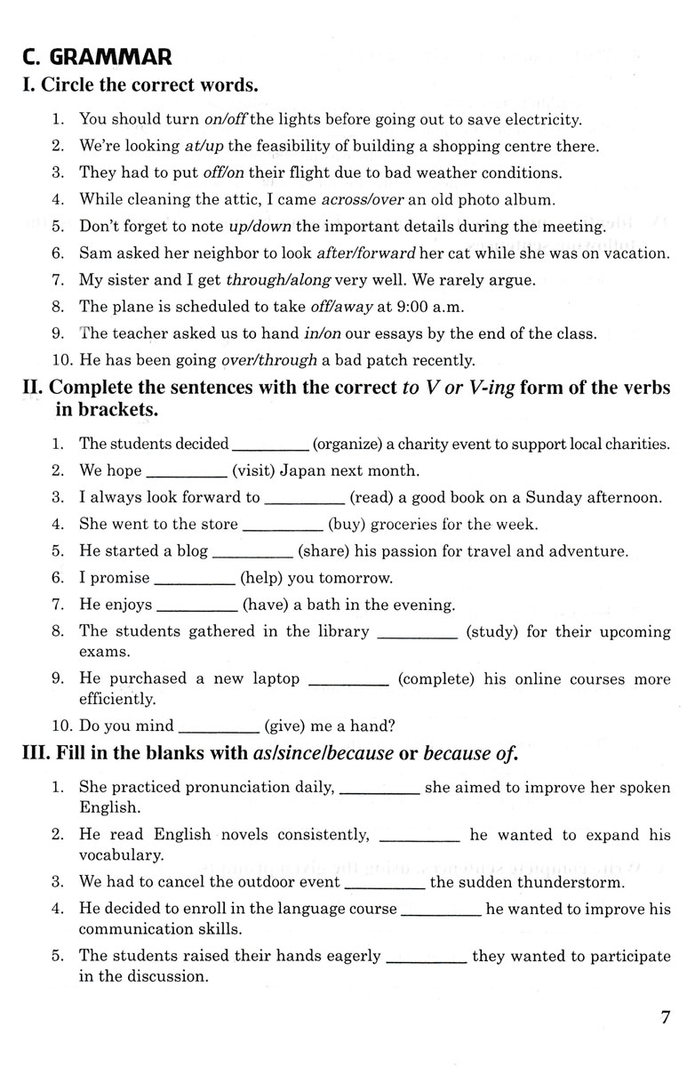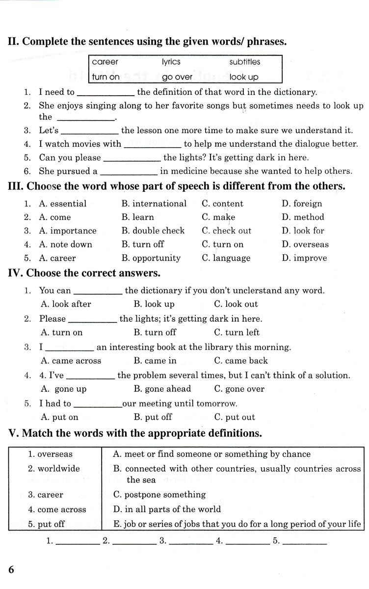 Các bài tập trong mỗi đơn vị bài học được bố cục theo từng phần rõ ràng như sau: