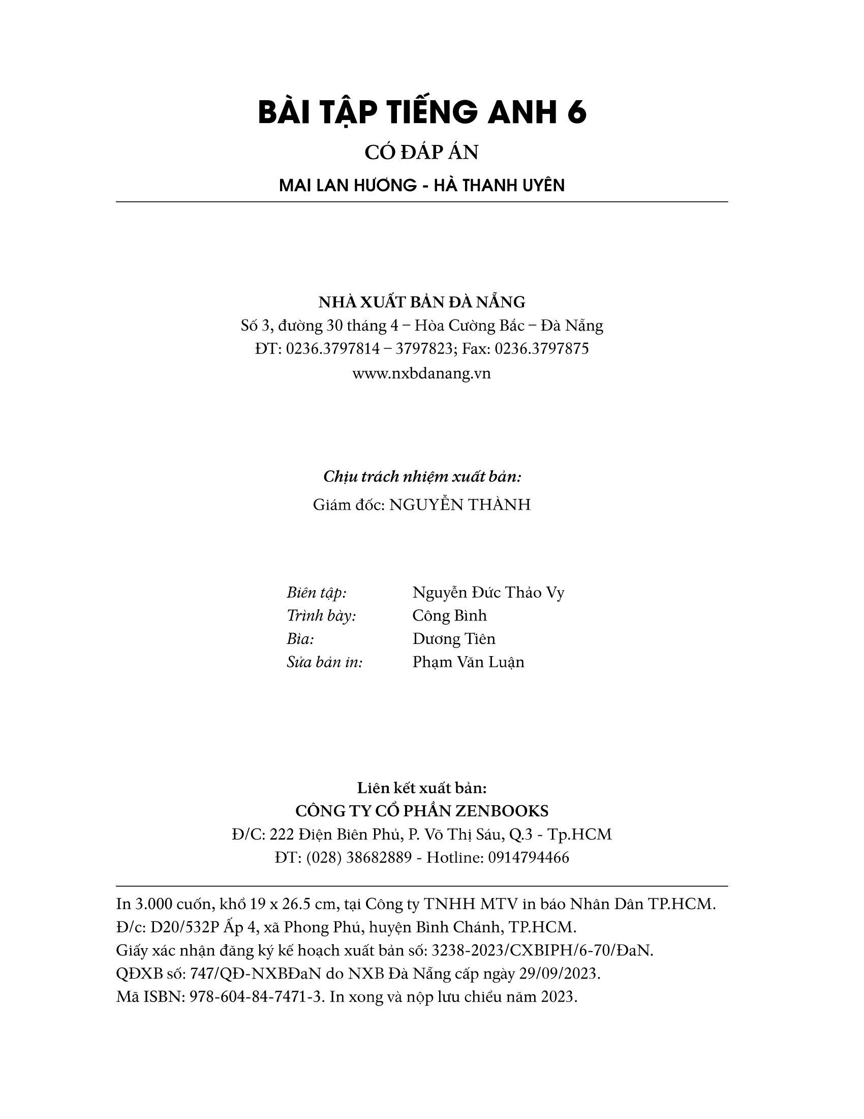 Nhằm giúp các em học sinh có thêm tài liệu để ôn luyện và thực hành môn tiếng Anh 6 theo chương trình mới của Bộ Giáo dục và Đào tạo, chúng tôi biên soạn bộ sách Bài tập tiếng Anh 6.