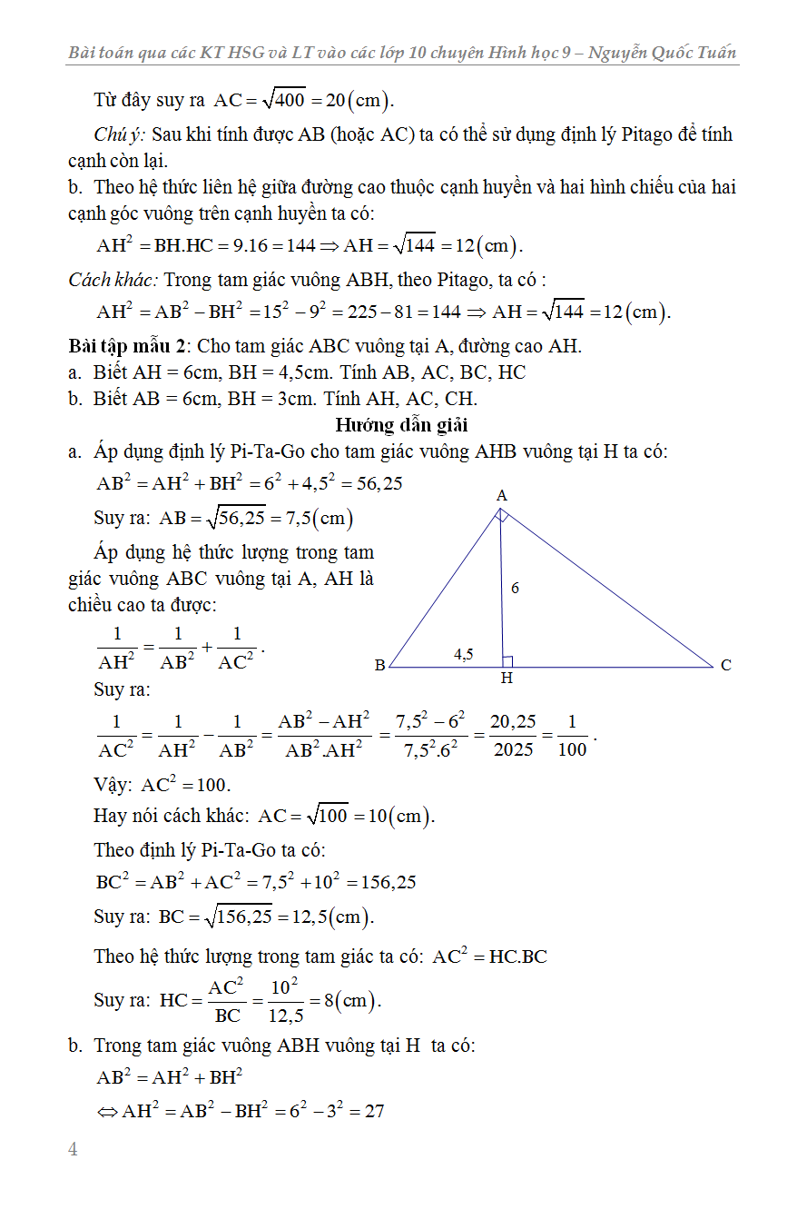Chương I: Hệ thức lượng trong tam giác vuông