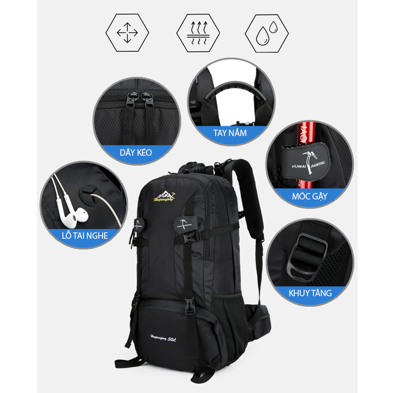 Kích thước : rộng 34cm X cao 56cm X dày 19cm Trọng lượng: 1 kg Công suất: 50L Màu sắc: Đen, Xanh đen, Xanh dương, Đỏ, Xanh lá Phương pháp sản xuất: công nghệ cao