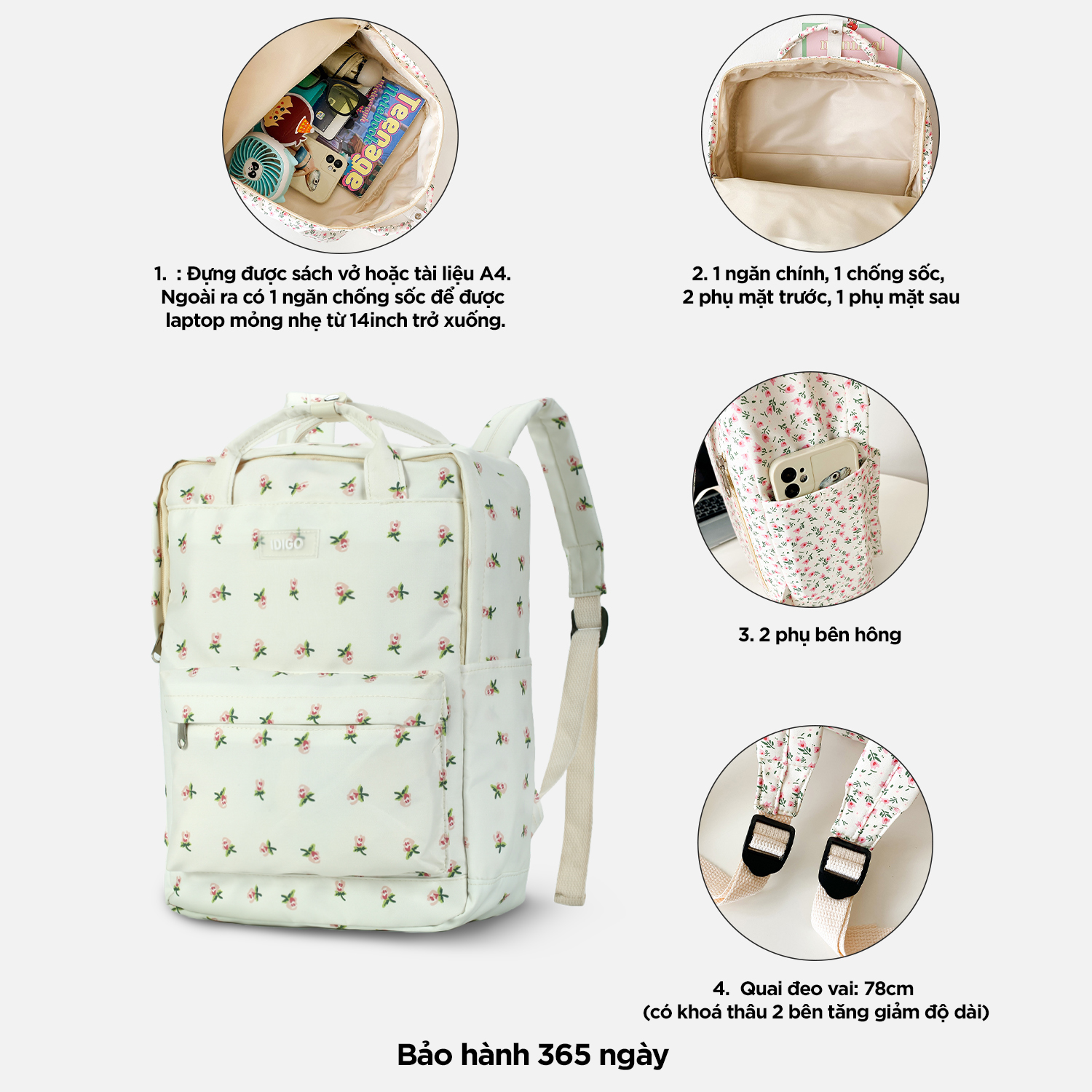 Sản phẩm túi này được IDIGO đặt sản xuất tại nhà máy Trung Quốc và nhập khẩu chính ngạch về Việt Nam, có thông tin sản phẩm nhập khẩu in rõ ràng trên tem nhãn.