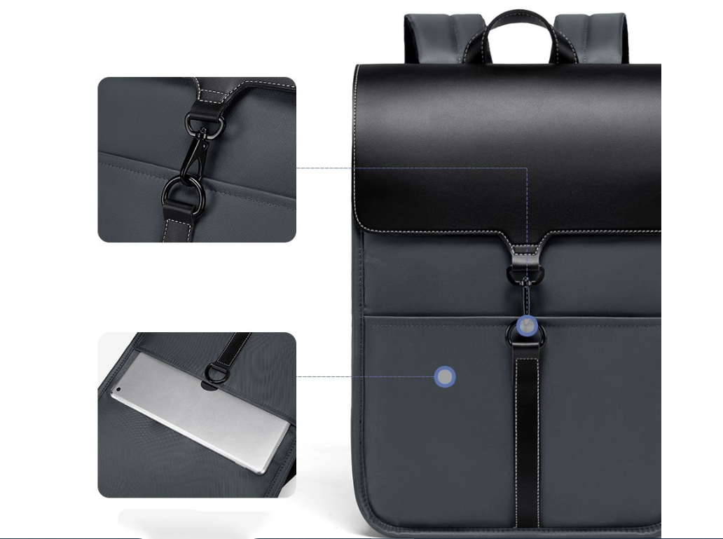 Chiếc Balo laptop nam nữ 15”, ba lô đi làm, đi học đựng máy tính 15inch ngăn trước khoá gài với thiết kế dáng đứng cùng chi tiết ngăn trước khoá gài phối da vân tạo