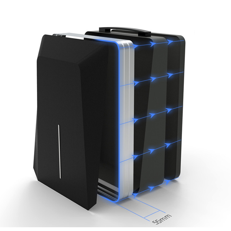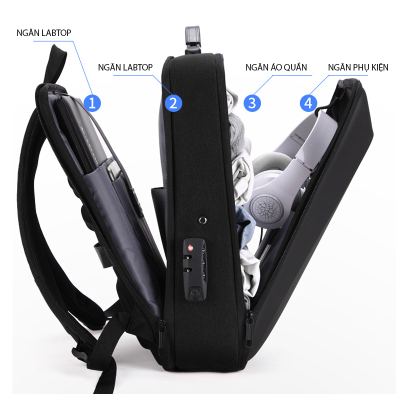 Chức năng: thoáng khí, chống mài mòn, dễ làm sáng, chống sốc, có sạc điện thoại, khóa chống trộm