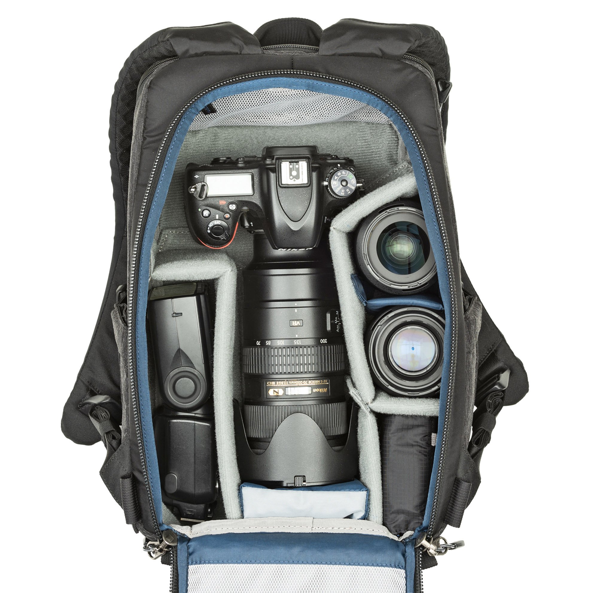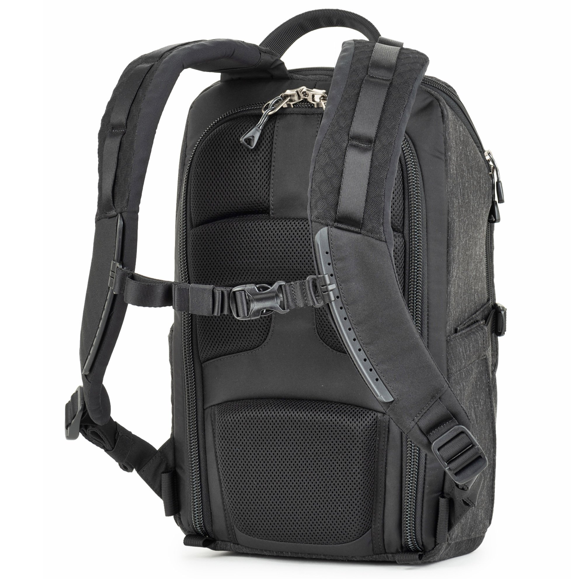 Balo máy ảnh Think Tank Backstory 15 với miệng túi chính ở vị trí phía sau giúp người dùng dễ dàng sắp xếp các thiết bị bên trong , cùng với ngăn phụ phía trên