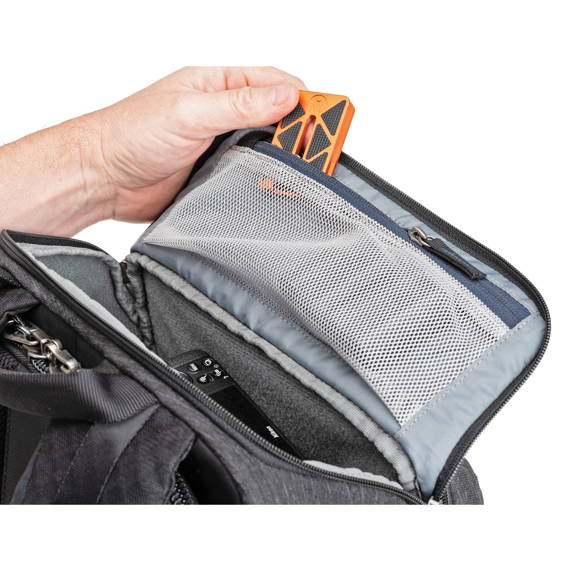 - Ngăn túi chính có các túi nhỏ để chứa kính lọc , pin , thẻ nhớ