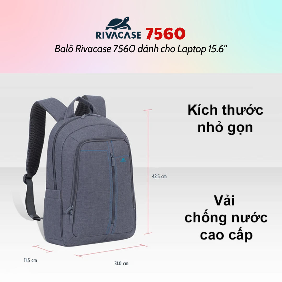 ✨Balô Rivacase 7560 Dành Cho Laptop 15.6" - Hàng Chính Hãng - Bảo Hành 24 Tháng