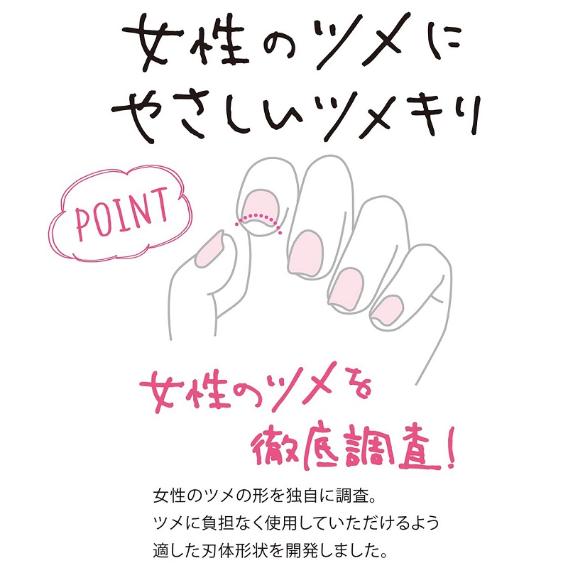 - Cấu trúc lưỡi vòm 3D phù hợp với hình dạng móng tay của phụ nữ giúp giảm sự biến dạng và gánh nặng của móng khi cắt/tỉa.