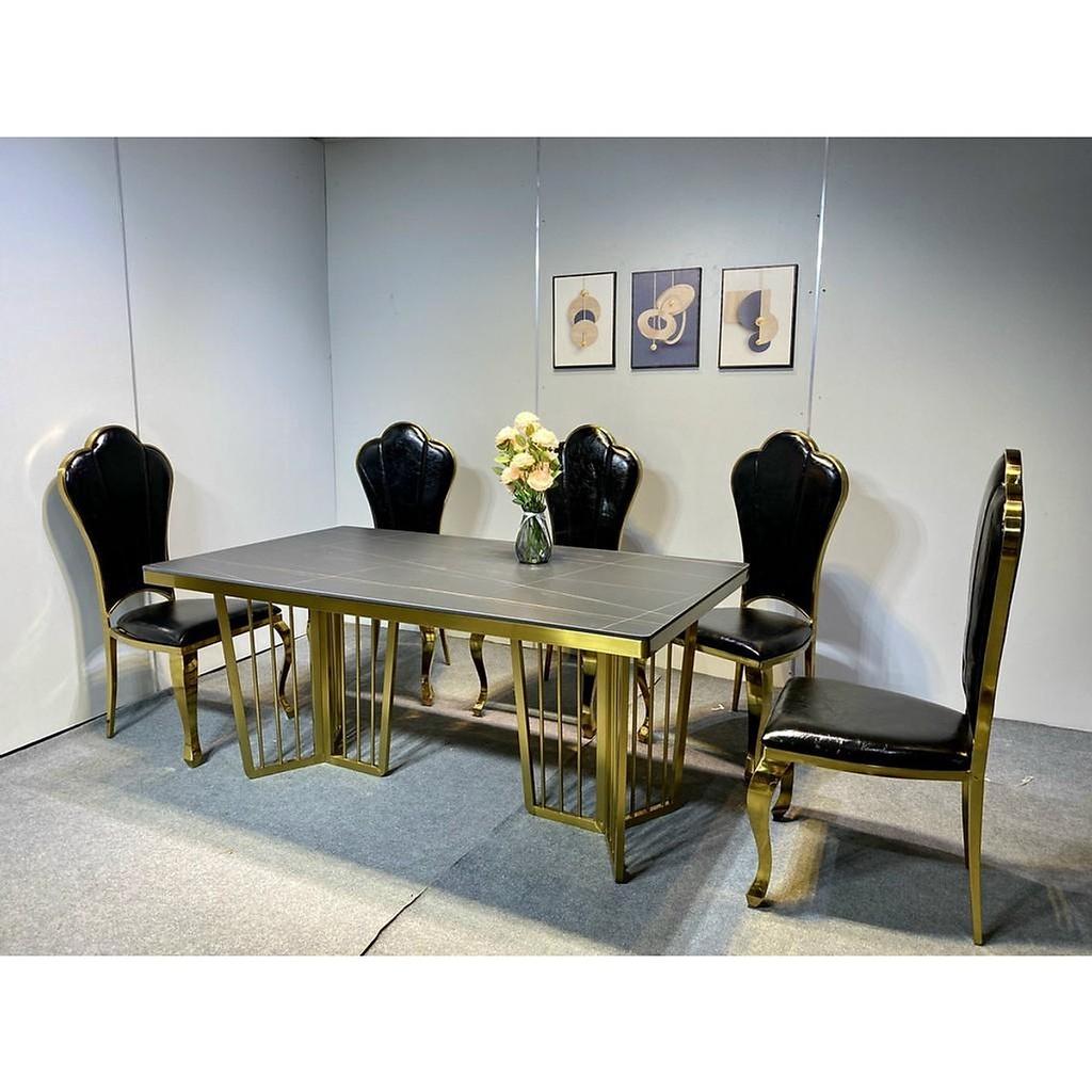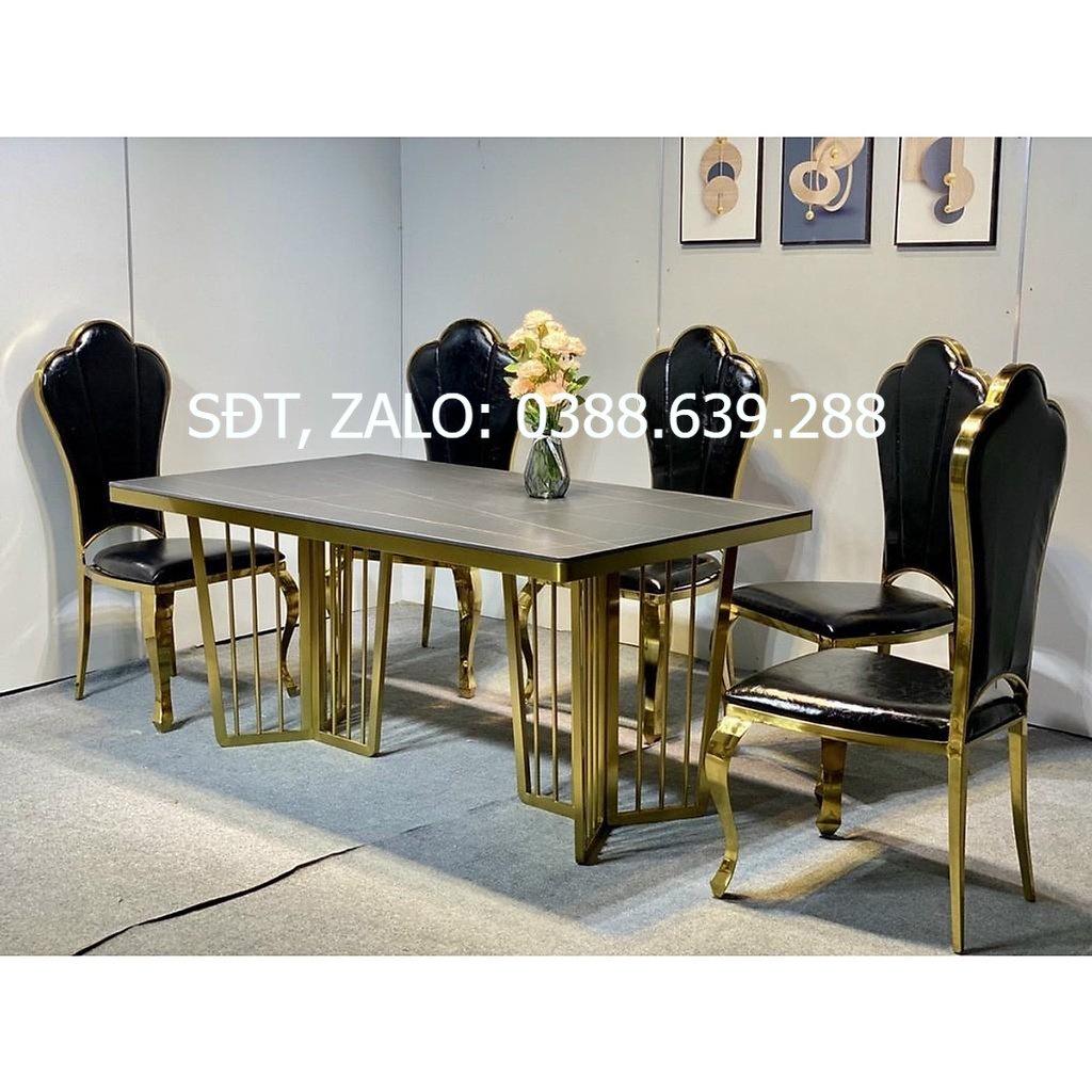 Bộ bàn ăn mặt đá nhập khẩu chân mạ vàng PVD ghế Queen - noithatgiakho.com