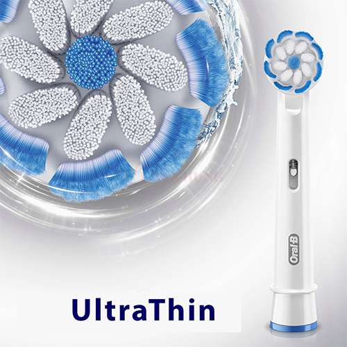 Bàn chải điện Oral-B Vitality Ultrathin D12.513 - Thiết kế đầu bàn chải tròn, lông bàn chải nghiêng góc 16 độ giúp giảm mảng bám, cải thiện sức khỏe của nướu. - Lông bàn chải
