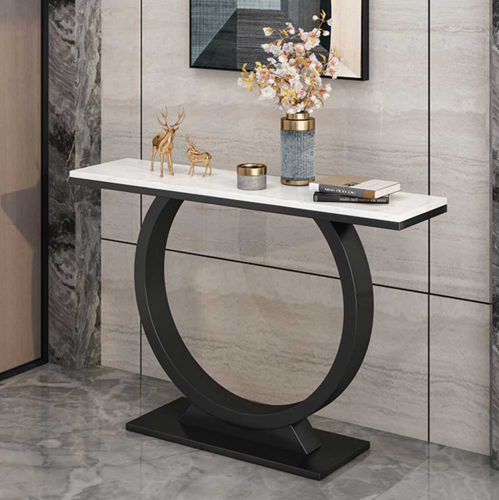 Bàn console ONI mặt đá khung sắt CSTCT052 thuộc dòng sản phẩm bàn trang trí, bàn console với sự kết hợp của mặt đá và khung sắt. Mặt đá cao cấp vân mây 2 màu trắng