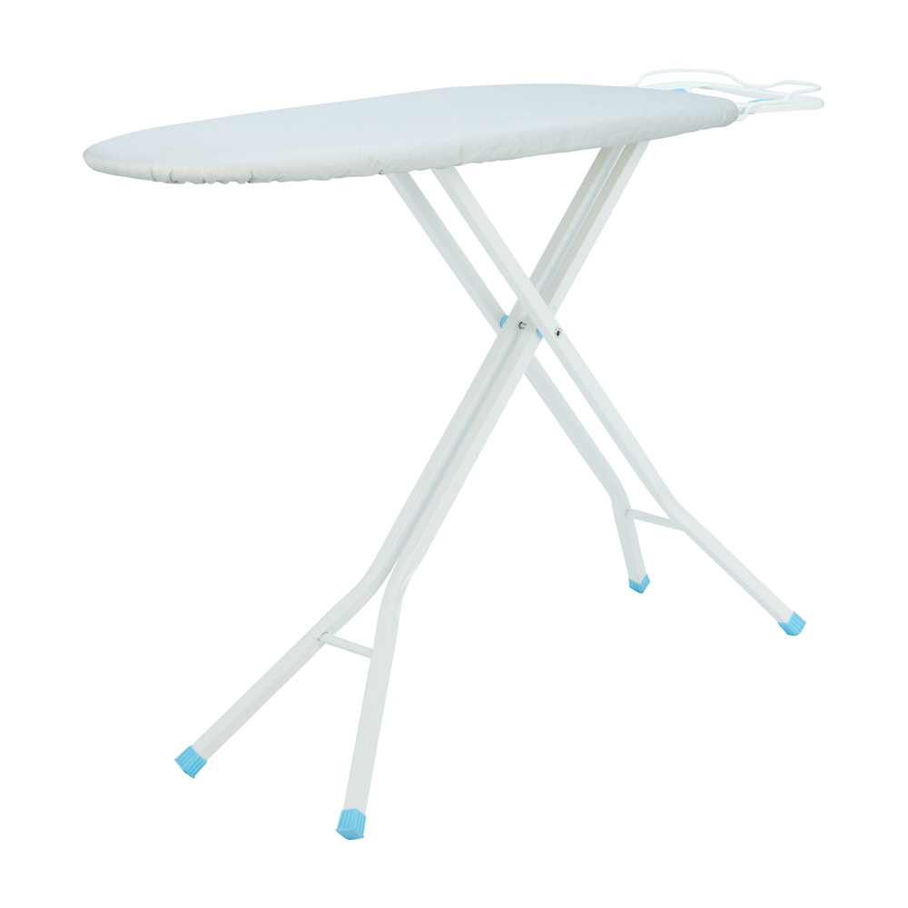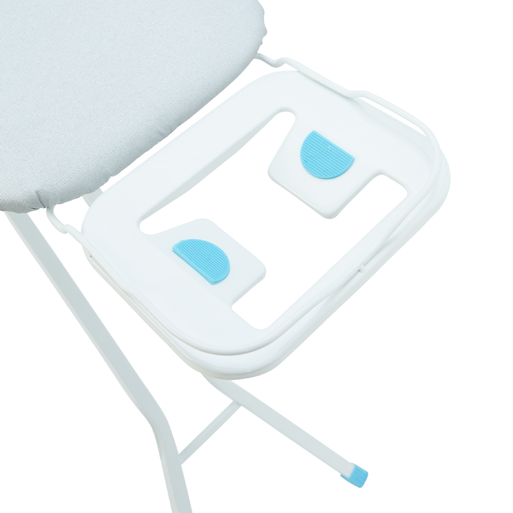 Khung kim loại chắc chắn Khung bằng kim loại, chịu lực tốt và có độ bền cao. Mặt bàn để ủi được làm bằng ván ép chất lượng, đủ độ cứng nhưng vẫn gọn nhẹ