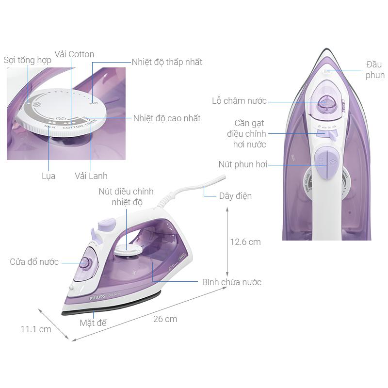 Đặc điểm nổi bật bàn ủi hơi nước Philips DST3030/70 - Công suất 2000W, làm nóng nhanh, ủi phẳng hiệu quả. - Hơi phun liên tục 30 g/phút, hơi phun tăng cường 100 g giúp