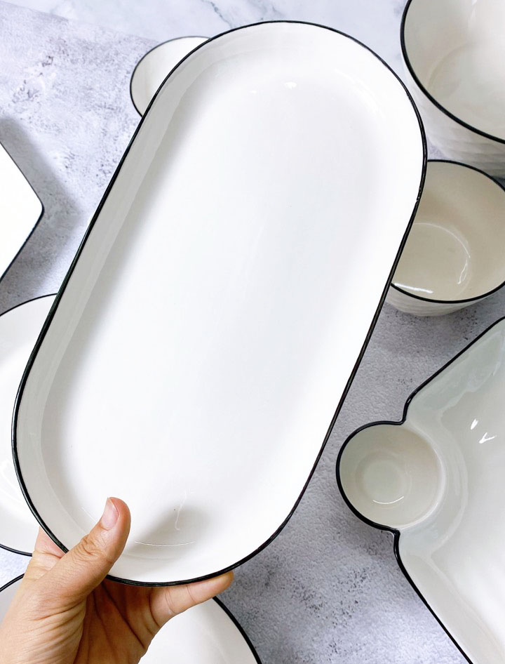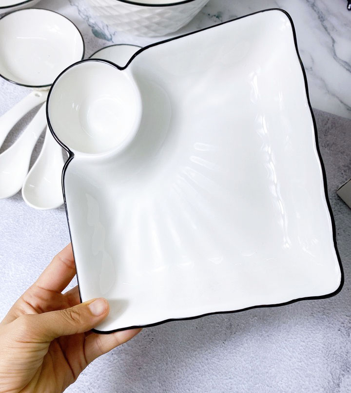 Bán Lẻ Bát Đĩa Thương Hiệu Gosu Men Trắng Cao Cấp Sáng Đẹp Họa Tiết Kim Cương Viền Đen