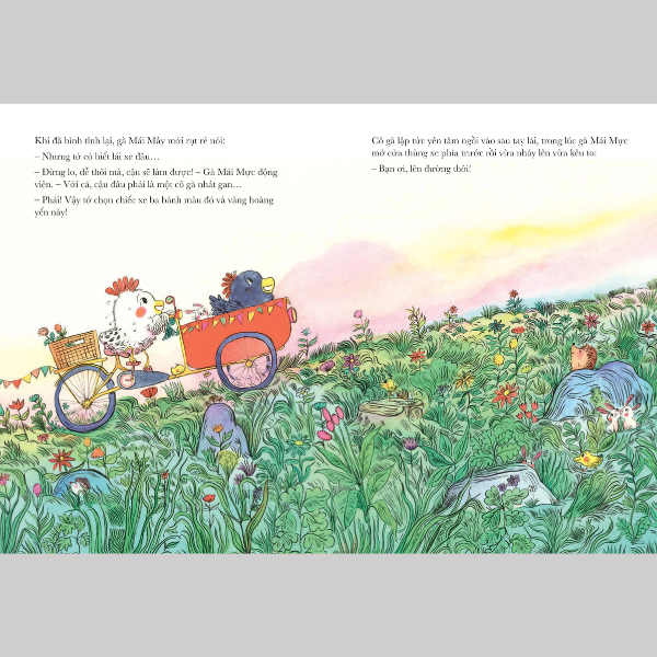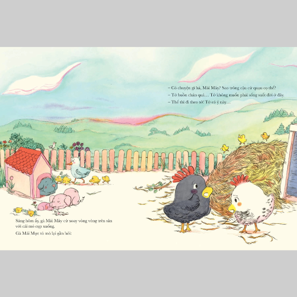Thế là, khi cô bạn gà Mái Mực đề xuất một chuyến dạo chơi tới Biển lông vũ, Mái Mây cảm thấy sẵn sàng tung cánh ngay…