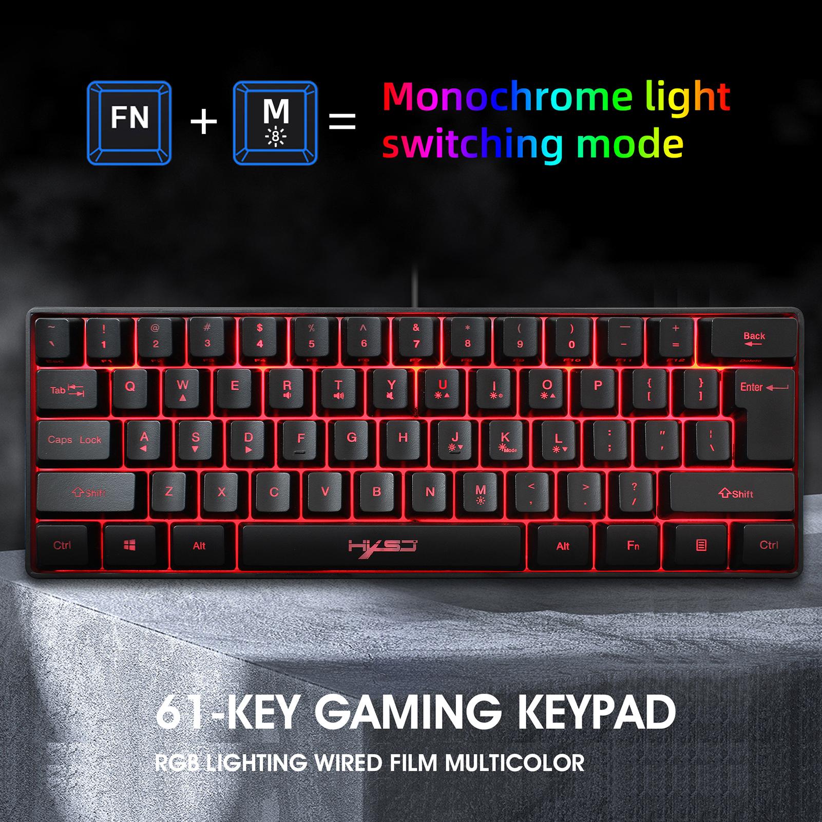Feature: Support 6/N-key rollover. Press Control and Caps Lock to change between 6-key rollover and N-key Rollover.Easily change to fulfil your needs in different games. Compact keyboard design. With only 61 keys, it performs the