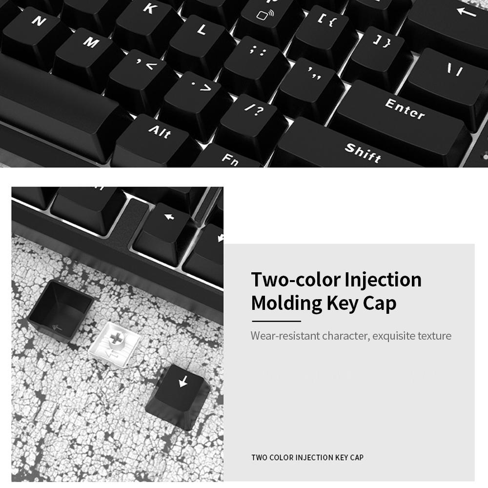 Features: N-key Rollover. 68 Keys design, with compact layout, and the N-key Rollover technique makes you stand out when playing games, and brings better gaming experience. ABS Floating Keycaps. Adopts the floating keycaps that are