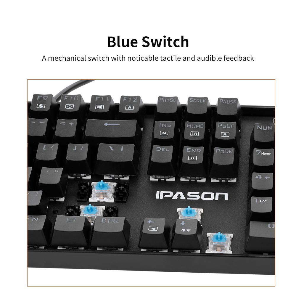 IPASON Mechanical Keyboard is designed for game player. 104 N-key rolloverkey with backlit gives you ultimate game experience. Mechanical blue switchbrings quick response and let you enjoy smooth game playing. Features: Mechanical Blue Switch To