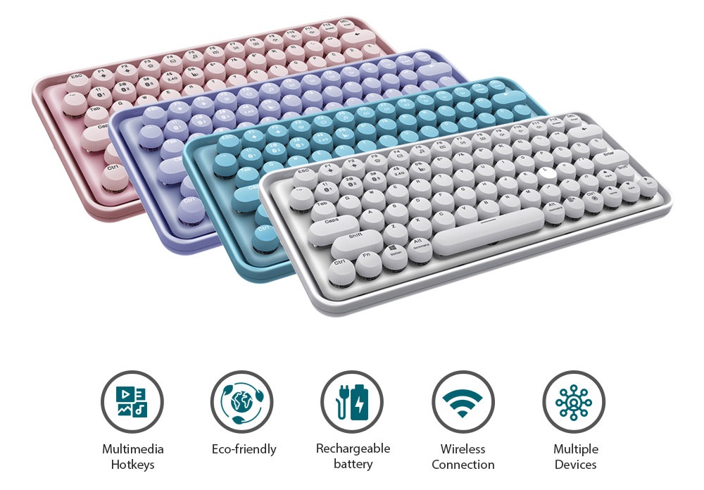 Phím chiclet với cơ chế cắt kéo "X-Scissors" mang lại cảm giác gõ êm ái, giảm tiếng ồn đến 80% Kích thước nhỏ gọn với khả năng tương thích cao dễ dàng mang đi bất