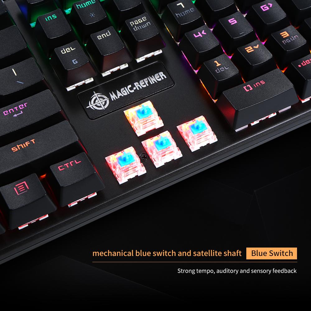 MAGIC-REFINER Mechanical Keyboard is designed for game player. 108 N-keyrollover key and 10 styles cool backlit gives you ultimate game experience.Mechanical blue switch brings quick response and let ...