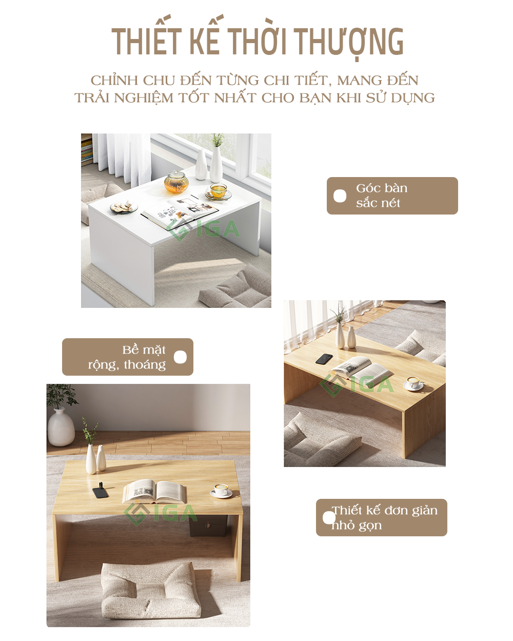- Tên sản phẩm: Bàn để kinh phật gấp gọn cho phật tử thương hiệu IGA - Chất liệu: Gỗ mdf phủ melamin chống xước, chân thép chống ghỉ phủ sơn tĩnh điện. - Kiểu