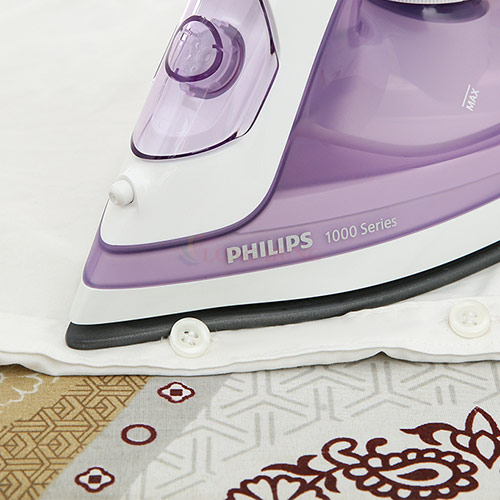 Màu sắc thời trang có màu tím thanh lịch, mặt đế bàn ủi phủ Titanium chống dính dày bền. Bàn ủi lướt êm ái trên mọi chất liệu vải, dễ làm sạch. Rãnh cúc và