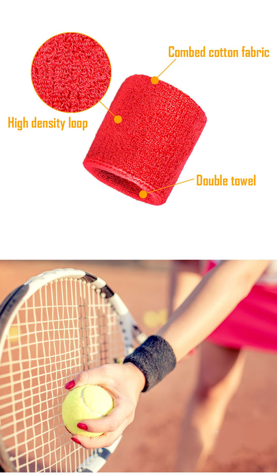 Băng chặn thấm mồ hôi đeo cổ tay hỗ trợ bảo vệ cổ tay khỏi các chấn thương trong quá trình luyện tập đồng thời thấm hút mồ hôi, giữ cho phần cổ tay luôn khô thoáng, thích hợp dùng trong các môn thể thao như cầu lông, tenis, bóng bán, bóng chuyề