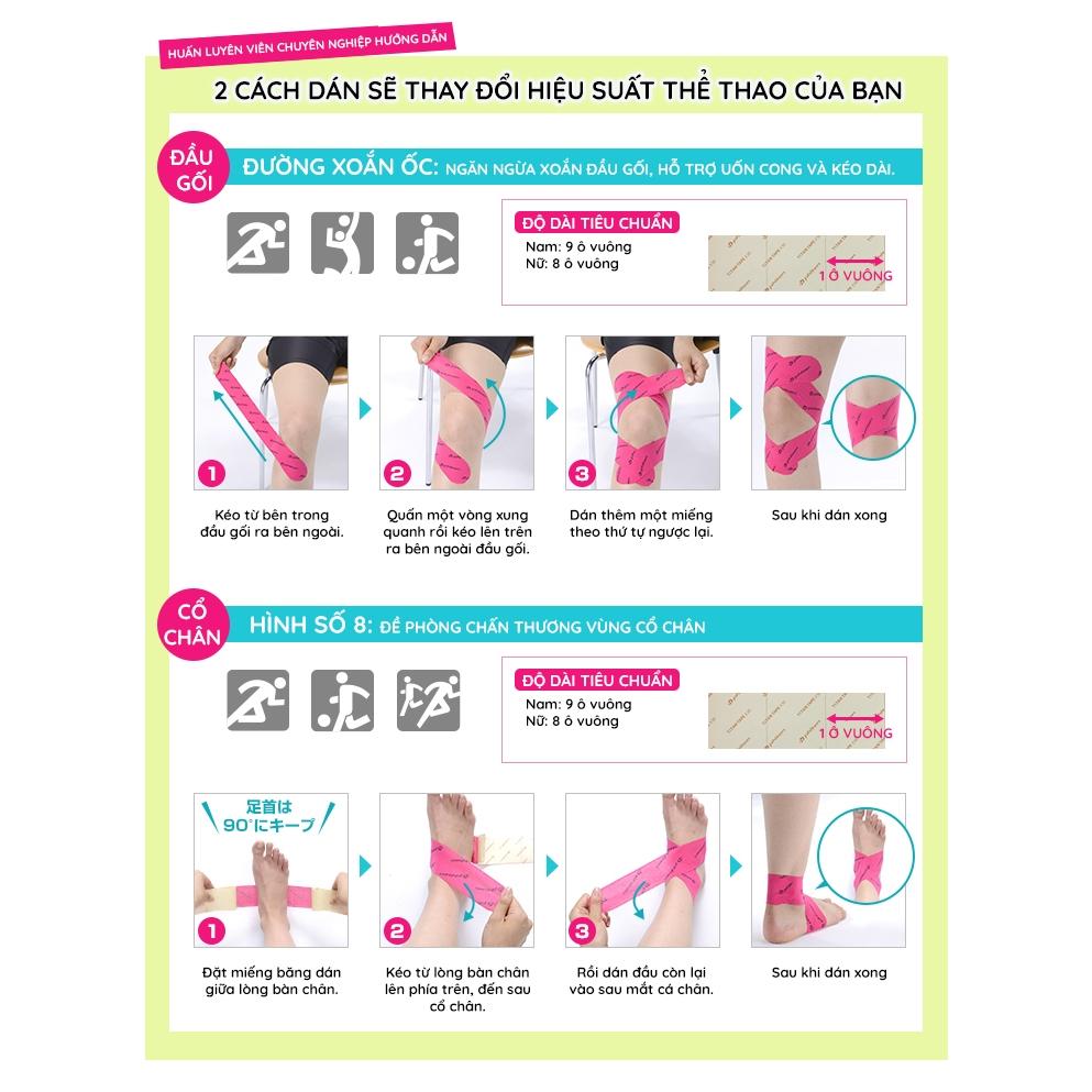 - Băng dán cơ thể ưa thích của nhiều khách hàng trên toàn thế giới. Hướng dẫn sử dụng: cắt 1 đoạn vừa phải và dán vào các vùng cơ thường xuyên chịu tác động mạnh khi chơi thể thao như: khớp gối, bắp chân, cổ chân, cánh tay, vai hoặc lưng (hoặc xem hướng dẫn trên hình mô tả) Thông tin cảnh báo :Ngưng sử dụng khi phát hiện dị ứng Thông số kỹ thuật: Size: rộng 5cm x dài 4.5m Chất liệu: vải dệt Màu sắc: Hồng, Be, Xanh lá, Xanh dương Mã phân loại sản phẩm: PU754029 : Hồng PU754129 : Xanh lá PU754329 : Be PU754229 : Xanh dương Hướng dẫn bảo quản: bảo quản ở nơi sạch và khô ráo Quy cách đóng gói: 1 cuộn/hộp Thương hiệu: Phiten Bảo hành: Không Xuất sứ: Nhật Bản