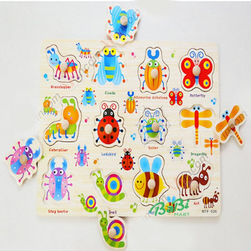 Bảng ghép hình núm gỗ nhiều chủ đề giúp bé phát triển tư duy và làm quen với thế giới xung quanh