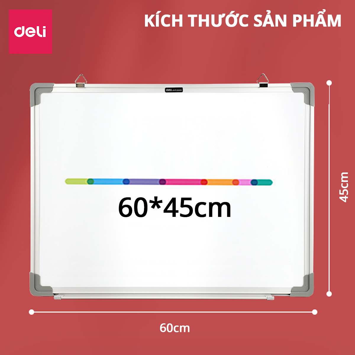 Bảng từ trắng viết bút lông Deli là dòng sản phẩm tiện dụng đa năng với nhiều kích thước (45x60cm, 90x60cm, 120x90cm). Với kích thước nhỏ tiện dụng, sử dụng khung nhôm nhỏ hoặc khung